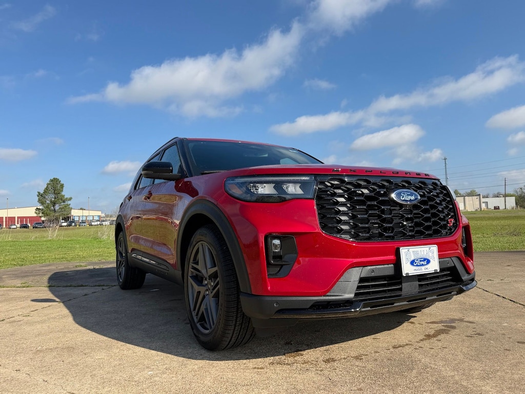 Let the team at Ed Wallace Ford introduce you to an entirely new kind of car-buying experience. This 2026 Ford Explorer ST in Red Metallic comes with the following features: 3.0L EcoBoost V6 10-Speed Automatic 4WD 4WD Equipment Group 400A Standard Package (Heated/Ventilated Miko Suede Captain's Chairs, Radio: B&O Sound System by Bang and Olufsen, and Wheels: 21" Magnetite-Painted Aluminum), 4WD, 10 Speakers, 3rd row seats: bench, 4-Wheel Disc Brakes, ABS brakes, Air Conditioning, Alloy wheels, AM/FM radio: SiriusXM with 360L, Apple CarPlay/Android Auto, Auto High-beam Headlights, Auto-dimming door mirrors, Auto-dimming Rear-View mirror, Automatic temperature control, BlueCruise Equipped (1-Year + 90-Day Plan), Brake assist, Bumpers: body-color, Compass, Delay-off headlights, Driver door bin, Driver vanity mirror, Dual front impact airbags, Dual front side impact airbags, Electronic Stability Control, Emergency communication system: 911 Assist, Exterior Parking Camera Rear, Four wheel independent suspension, Front anti-roll bar, Front Bucket Seats, Front Center Armrest, Front dual zone A/C, Front fog lights, Front License Plate Bracket, Front reading lights, Fully automatic headlights, Garage door transmitter, Heated door mirrors, Heated front seats, Heated rear seats, Heated steering wheel, Illuminated entry, Knee airbag, Leather steering wheel, Low tire pressure warning, Memory seat, Navigation System, Occupant sensing airbag, Outside temperature display, Overhead airbag, Overhead console, Panic alarm, Passenger door bin, Passenger vanity mirror, Power door mirrors, Power driver seat, Power Liftgate, Power passenger seat, Power steering, Power windows, Rain sensing wipers, Rear air conditioning, Rear anti-roll bar, Rear reading lights, Rear window defroster, Rear window wiper, Remote keyless entry, SecuriCode Keyless Entry Keypad, Security system, Speed control, Speed-sensing steering, Speed-Sensitive Wipers, Split folding rear seat, Spoiler, Sport steering wheel, Steering wheel mounted audio controls, Tachometer, Telescoping steering wheel, Tilt steering wheel, Traction control, Trip computer, Turn signal indicator mirrors, Variably intermittent wipers, and Ventilated front seats. Price includes: $3500 - Retail Customer Cash. Exp. 04/30/2026