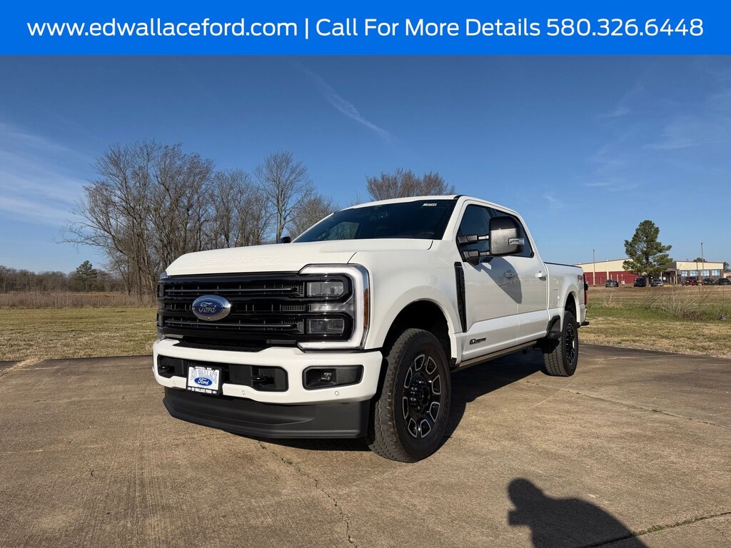 Let the team at Ed Wallace Ford introduce you to an entirely new kind of car-buying experience. This 2026 Ford F-250SD Platinum in White Metallic comes with the following features: Power Stroke 6.7L V8 DI 32V OHV Turbodiesel 10-Speed Automatic 4WD 4WD Ford Connectivity Package (1-Year Included), FX4 Off-Road Package (Hill Descent Control, Off-Road Specifically Tuned Shock Absorbers, and Unique FX4 Off-Road Box Decal), GVWR: F-250 >10K Package, Internet access capable: 5G Modem - Ford Connectivity Package, 4WD, 4-Wheel Disc Brakes, 410 Amp Dual Alternators, ABS brakes, Adjustable pedals, Air Conditioning, Alloy wheels, AM/FM radio: SiriusXM with 360L, Auto High-beam Headlights, Auto-dimming Rear-View mirror, Automatic temperature control, Brake assist, Compass, Delay-off headlights, Driver door bin, Driver vanity mirror, Dual front impact airbags, Dual front side impact airbags, Electronic Stability Control, Emergency communication system: SYNC 4 911 Assist, Flow-Through Console, Front and Rear Wheel Well Liners, Front anti-roll bar, Front Bucket Seats, Front Center Armrest, Front dual zone A/C, Front fog lights, Front License Plate Bracket, Front reading lights, Fully automatic headlights, Garage door transmitter, Heated door mirrors, Heated front seats, Heated rear seats, Heated steering wheel, Illuminated entry, Low tire pressure warning, Max Recline Seats, Memory seat, Navigation system: Connected Navigation, Outside temperature display, Overhead airbag, Overhead console, Panic alarm, Passenger door bin, Passenger vanity mirror, Pedal memory, Power door mirrors, Power driver seat, Power passenger seat, Power steering, Power windows, Radio: B&O Unleashed Sound System by Bang & Olufsen, Rain sensing wipers, Rapid-Heat Supplemental Cab Heater, Rear reading lights, Rear seat center armrest, Rear step bumper, Rear window defroster, Remote keyless entry, SecuriCode Keyless Entry Keypad (driver's Side), Security system, SiriusXM with 360L, Speed control, Split folding rear seat, Steering wheel mounted audio controls, SYNC 4 with Enhanced Voice Recognition, Tachometer, Telescoping steering wheel, Tilt steering wheel, Tough Bed Spray-in Bedliner, Traction control, Trip computer, Turn signal indicator mirrors, Twin Panel Power Moonroof, Upfitter Switches (6), Variably intermittent wipers, and Ventilated front seats.