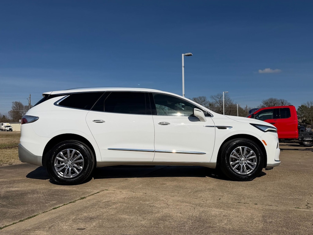 Let the team at Ed Wallace Ford introduce you to an entirely new kind of car-buying experience. This 2024 Buick Enclave Premium Group in Summit White comes with the following features: 3.6L V6 SIDI VVT 9-Speed Automatic AWD New Tires AWD Adaptive Cruise & Wheel Package (20" Polished Aluminum Wheels, Adaptive Cruise Control, and Enhanced Automatic Emergency Braking), Floor Liner Package (LPO) (1st & 2nd Row All-Weather Floor Liners (LPO), 3rd Row All-Weather Floor Liner (LPO), and Integrated Cargo Liner (LPO)), Front Mounting License Plate Bracket Package, Luxury Package (LPO) (Black Surround Grille w/Black Wing (LPO) and Painted Molded Assist Steps (LPO)), Preferred Equipment Group 1SN (Vehicle Health Management), Sport Touring Edition (Sport Touring Liftgate Badging, Unique Sport Grille w/Body-Color Surround, and Wheels: 20" Gloss Black), Touring Package (LPO) (Wheels: 20" Machined Face Aluminum (LPO) and Wheels: 20" Transit), AWD, 10 Speakers, 18" Aluminum Wheels, 3.49 Final Drive Axle Ratio, 3rd row seats: split-bench, 4-Wheel Disc Brakes, 6-Way Power Front Passenger Seat Adjuster, 7-Passenger Seating, 8-Way Power Driver Seat Adjuster, ABS brakes, Active Cruise Control, Air Conditioning, Alloy wheels, AM/FM radio: SiriusXM with 360L, Auto High-beam Headlights, Auto-dimming door mirrors, Auto-dimming Rear-View mirror, Automatic temperature control, Bose Performance-Enhanced 10-Speaker System, Brake assist, Bumpers: body-color, Compass, Delay-off headlights, Driver 4-Way Power Lumbar Seat Adjuster, Driver door bin, Driver vanity mirror, Dual front impact airbags, Dual front side impact airbags, Electronic Stability Control, Emergency communication system: OnStar and Buick connected services capable, Exterior Parking Camera Rear, Four wheel independent suspension, Front anti-roll bar, Front Bucket Seats, Front Center Armrest, Front dual zone A/C, Front Passenger 4-Way Power Lumbar Seat Adjuster, Front reading lights, Fully automatic headlights, Garage door transmitter, Heads-Up Display, Heated door mirrors, Heated Driver & Front Passenger Seats, Heated front seats, Heated rear seats, Heated steering wheel, Illuminated entry, Leather steering wheel, Low tire pressure warning, Memory seat, Navigation System, Occupant sensing airbag, Outside temperature display, Overhead airbag, Overhead console, Panic alarm, Passenger door bin, Passenger vanity mirror, Perforated Leather-Appointed Seat Trim, Power door mirrors, Power driver seat, Power Liftgate, Power passenger seat, Power steering, Power windows, Premium audio system: Buick Infotainment System, Radio data system, Radio: Buick Infotainment Sys AM/FM Stereo w/Nav, Rear air conditioning, Rear anti-roll bar, Rear reading lights, Rear window defroster, Rear window wiper, Remote keyless entry, Security system, SiriusXM w/360L, Speed control, Speed-sensing steering, Spoiler, Steering wheel memory, Steering wheel mounted audio controls, Tachometer, Telescoping steering wheel, Tilt steering wheel, Traction control, Trip computer, Turn signal indicator mirrors, Variably intermittent wipers, Ventilated Driver & Front Passenger Seats, Ventilated front seats, Voltmeter, and Wireless Apple CarPlay/Wireless Android Auto.