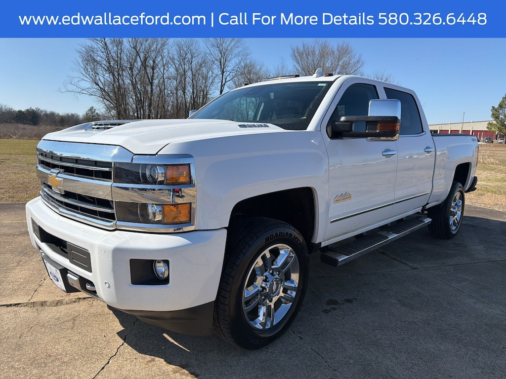 Let the team at Ed Wallace Ford introduce you to an entirely new kind of car-buying experience. This 2019 Chevrolet Silverado 2500HD High Country in Summit White comes with the following features: Duramax 6.6L V8 Turbodiesel Allison 1000 6-Speed Automatic 4WD Allison 1000 6-Speed Automatic, 4WD, and Jet Black Medium Ash Gray Piping Stitching Leather Driver Alert Package (Forward Collision Alert and Lane Departure Warning System), Duramax Plus Package (Chrome Power-Adjustable Heated Trailering Mirrors, Chrome Recovery Hooks, and Engine Block Heater), Preferred Equipment Group 3LZ (110-Volt AC Power Outlet, 4.2" Diagonal Color Display Driver Info Center, 6" Rectangular Chromed Assist Steps (LPO), Auto-Dimming Inside Rear-View Mirror, Bright Sill Plates, Chevrolet 4G LTE, Chevrolet Connected Access, Chrome Bodyside Moldings, Chrome Door Handles, Chrome Mirror Caps, Color-Keyed Carpeting Floor Covering, Deep-Tinted Glass, Digital Steering Assist, Driver & Front Passenger Vanity Mirror Visors, Dual-Zone Automatic Climate Control, Electric Rear-Window Defogger, Electronic Shift Transfer Case, Front Halogen Fog Lamps, HD Radio, Heated Power-Adjustable Outside Mirrors, Leather-Wrapped Steering Wheel, Manual Tilt-Wheel/Telescoping Steering Column, OnStar & Chevrolet Connected Services Capable, Power Sliding Rear Window w/Defogger, Rear 60/40 Folding Bench Seat (Folds Up), Rear Wheelhouse Liners, Remote Keyless Entry, Remote Locking Tailgate, Remote Vehicle Starter System, Single Slot CD/MP3 Player, SiriusXM Radio, Spray-On Pickup Box Bed Liner w/Bowtie Logo, Steering Wheel Audio Controls, Unauthorized Entry Theft-Deterrent System, and Universal Home Remote), Standard Suspension Package, Trailering Equipment, Allison 1000 6-Speed Automatic, 4WD, Jet Black Medium Ash Gray Piping Stitching Leather, 4 Movable Upper Cargo Tie Downs, 4-Wheel Disc Brakes, 7 Speakers, ABS brakes, Adjustable pedals, Air Conditioning, Alloy wheels, AM/FM radio: SiriusXM, Auto-dimming door mirrors, Auto-dimming Rear-View mirror, Automatic temperature control, Black Recovery Hooks, Body-Color Front Bumper, Body-Color Rear Bumper, Bodyside moldings, BOSE Sound w/6 Speaker System, Brake assist, Bumpers: body-color, Carpeted Front & Rear Floor Mats, CD player, Chrome wheels, Compass, Delay-off headlights, Driver door bin, Driver vanity mirror, Dual front impact airbags, Dual front side impact airbags, Electronic Stability Control, Exhaust Brake, Exterior Parking Camera Rear, Floor Mounted Console, Front anti-roll bar, Front Bucket Seats, Front Center Armrest w/Storage, Front dual zone A/C, Front fog lights, Front License Plate Kit, Front reading lights, Front wheel independent suspension, Fully automatic headlights, Garage door transmitter, Heated & Vented Front Seating, Heated door mirrors, Heated Driver & Front Passenger Seating, Heated Front Full Feature Bucket Seats, Heated front seats, Heated Leather Wrapped Steering Wheel, Heated steering wheel, High Idle Switch, Illuminated entry, Integrated Trailer Brake Controller, LED Cargo Box Lighting, Low tire pressure warning, Memory seat, Navigation System, Occupant sensing airbag, Outside temperature display, Overhead airbag, Overhead console, Panic alarm, Passenger door bin, Passenger vanity mirror, Perforated Leather Appointed Seat Trim, Power door mirrors, Power driver seat, Power passenger seat, Power steering, Power Sunroof, Power windows, Power-Adjustable Pedals, Premium audio system: Chevrolet Infotainment System, Radio: Chevrolet Infotainment System w/Navigation, Rear reading lights, Rear seat center armrest, Rear step bumper, Rear Under-Seat Storage (LPO), Rear window defroster, Remote keyless entry, Security system, Smoked Amber Roof Marker Lamps, Speed control, Speed-sensing steering, Split fol