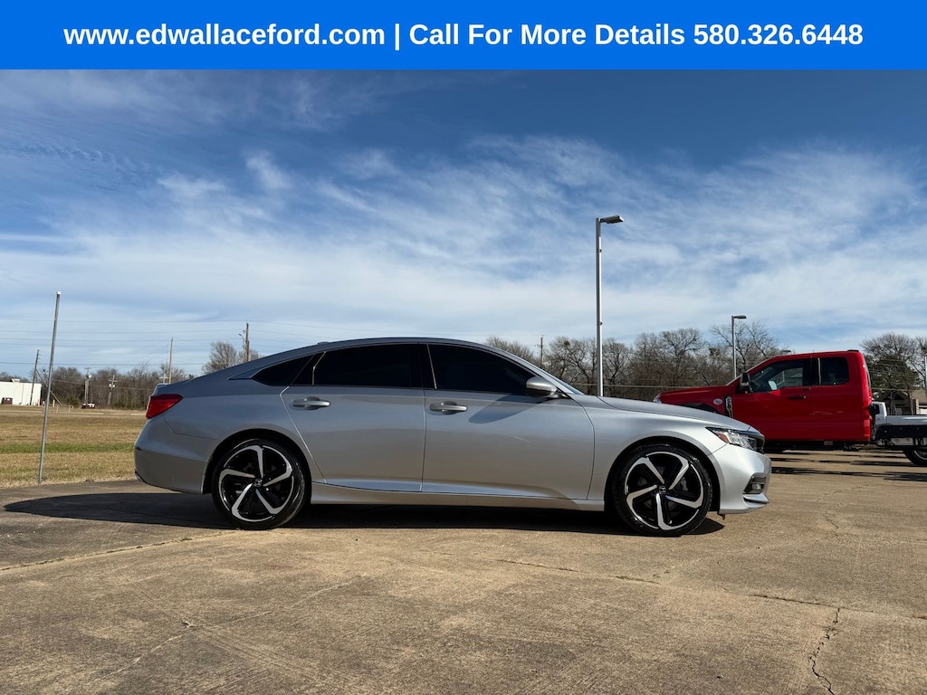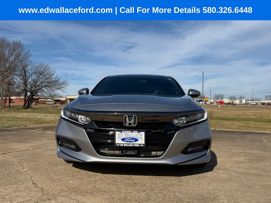 Let the team at Ed Wallace Ford introduce you to an entirely new kind of car-buying experience. This 2020 Honda Accord Sport in Silver comes with the following features: 1.5T I4 DOHC 16V Turbocharged VTEC CVT FWD Cloth Cloth, 4-Wheel Disc Brakes, 8 Speakers, ABS brakes, Adaptive Cruise Control: Adaptive Cruise Control (ACC) with Low-Speed Follow, Air Conditioning, Alloy wheels, AM/FM radio, Apple CarPlay/Android Auto, Auto High-beam Headlights, Automatic temperature control, Brake assist, Bumpers: body-color, Cloth Seat Trim, Delay-off headlights, Driver door bin, Driver vanity mirror, Dual front impact airbags, Dual front side impact airbags, Electronic Stability Control, Emergency communication system: HondaLink, Exterior Parking Camera Rear, Forward collision: Collision Mitigation Braking System (CMBS) + FCW mitigation, Four wheel independent suspension, Front anti-roll bar, Front Bucket Seats, Front Center Armrest, Front dual zone A/C, Front fog lights, Front reading lights, Fully automatic headlights, Illuminated entry, Knee airbag, Lane Departure Warning System, Leather Shift Knob, Leather steering wheel, Low tire pressure warning, Occupant sensing airbag, Outside temperature display, Overhead airbag, Overhead console, Panic alarm, Passenger door bin, Passenger vanity mirror, Power door mirrors, Power driver seat, Power steering, Power windows, Radio data system, Radio: 180-Watt AM/FM Audio System, Rear anti-roll bar, Rear seat center armrest, Rear window defroster, Remote keyless entry, Security system, Speed control, Speed-sensing steering, Speed-Sensitive Wipers, Split folding rear seat, Spoiler, Steering wheel mounted audio controls, Tachometer, Telescoping steering wheel, Tilt steering wheel, Traction control, Trip computer, Variably intermittent wipers, and Wheels: 19" Machine-Finished Alloy w/Black Inserts. Odometer is 13742 miles below market average! 29/35 City/Highway MPG