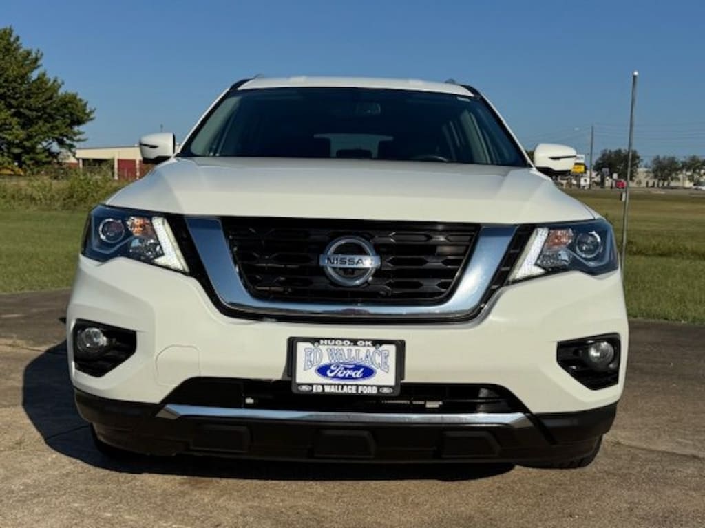 Let the team at Ed Wallace Ford introduce you to an entirely new kind of car-buying experience. This 2020 Nissan Pathfinder SL in Glacier White comes with the following features: V6 CVT with Xtronic 4WD New Tires 4WD and Active Cruise Control 4WD, Active Cruise Control, 3rd row seats: bench, 4-Wheel Disc Brakes, 5.25 Axle Ratio, 6 Speakers, ABS brakes, Air Conditioning, Alloy wheels, AM/FM radio: SiriusXM, Auto-dimming Rear-View mirror, Automatic temperature control, Blind Spot Warning, Brake assist, Bumpers: body-color, Carpeted Floor Mats (4-pc Set), CD player, Compass, Delay-off headlights, Driver door bin, Driver vanity mirror, Dual front impact airbags, Dual front side impact airbags, Electronic Stability Control, Emergency communication system: NissanConnect Services, Exterior Parking Camera Rear, Four wheel independent suspension, Front anti-roll bar, Front Bucket Seats, Front Center Armrest, Front dual zone A/C, Front fog lights, Front reading lights, Fully automatic headlights, Garage door transmitter: HomeLink, Heated door mirrors, Heated Front Bucket Seats, Heated front seats, Heated rear seats, Heated steering wheel, Illuminated entry, Leather Seating Surfaces, Leather Shift Knob, Leather steering wheel, Low tire pressure warning, Memory seat, Navigation System, NissanConnect w/Navigation & Services, Occupant sensing airbag, Outside temperature display, Overhead airbag, Overhead console, Panic alarm, Passenger door bin, Passenger vanity mirror, Power door mirrors, Power driver seat, Power Liftgate, Power passenger seat, Power steering, Power windows, Radio data system, Radio: AM/FM/CD Audio System w/NissanConnect, Rear air conditioning, Rear anti-roll bar, Rear Parking Sensors, Rear reading lights, Rear seat center armrest, Rear window defroster, Rear window wiper, Reclining 3rd row seat, Remote keyless entry, Rock Creek Floor & Cargo Mats, Security system, SiriusXM Traffic, Speed control, Speed-sensing steering, Speed-Sensitive Wipers, Split folding rear seat, Spoiler, Steering wheel mounted audio controls, Tachometer, Telescoping steering wheel, Tilt steering wheel, Traction control, Trip computer, Turn signal indicator mirrors, Variably intermittent wipers, and Wheels: 18" x 7.5 J Machined Aluminum-Alloy. 20/27 City/Highway MPG