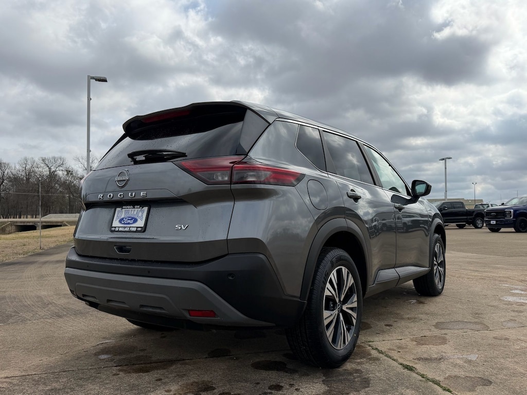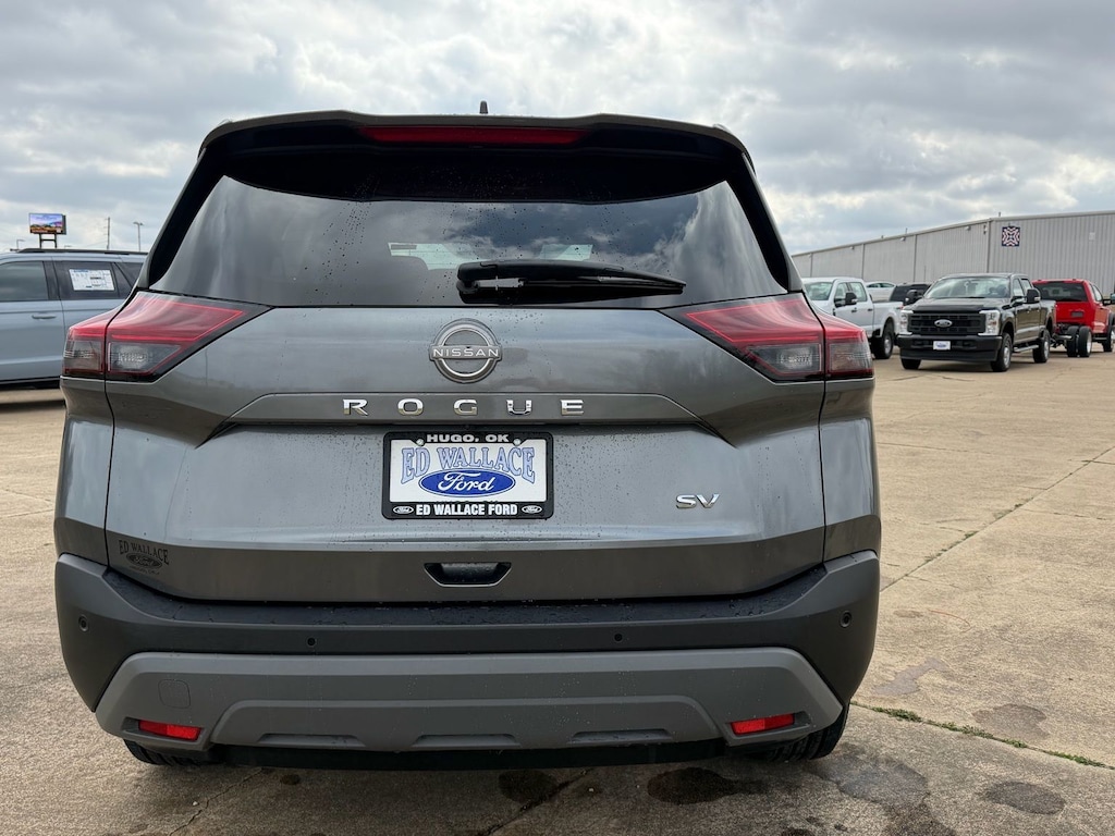 Let the team at Ed Wallace Ford introduce you to an entirely new kind of car-buying experience. This 2023 Nissan Rogue SV in Gun Metallic comes with the following features: 1.5L I3 Turbocharged DOHC 12V LEV3-ULEV50 201hp CVT with Xtronic FWD 18" Aluminum Alloy Wheels, 4-Wheel Disc Brakes, 5.604 Axle Ratio, 6 Speakers, ABS brakes, Air Conditioning, Alloy wheels, AM/FM Radio, AM/FM radio: SiriusXM, Auto High-beam Headlights, Automatic temperature control, Brake assist, Bumpers: body-color, Cloth Seat Trim, Delay-off headlights, Driver door bin, Driver vanity mirror, Dual front impact airbags, Dual front side impact airbags, Electronic Stability Control, Emergency communication system: NissanConnect Services, Floor Mats w/1-Piece Cargo Area Protector, Four wheel independent suspension, Front anti-roll bar, Front Bucket Seats, Front Center Armrest, Front dual zone A/C, Front reading lights, Fully automatic headlights, Heated door mirrors, Illuminated entry, Knee airbag, Low tire pressure warning, NissanConnect featuring Apple CarPlay and Android Auto, Occupant sensing airbag, Outside temperature display, Overhead airbag, Overhead console, Panic alarm, Passenger door bin, Passenger vanity mirror, Power door mirrors, Power driver seat, Power steering, Power windows, Radio data system, Rear anti-roll bar, Rear Parking Sensors, Rear seat center armrest, Rear side impact airbag, Rear window defroster, Rear window wiper, Remote keyless entry, Speed control, Speed-Sensitive Wipers, Split folding rear seat, Spoiler, Steering wheel mounted audio controls, Tachometer, Telescoping steering wheel, Tilt steering wheel, Traction control, Trip computer, and Variably intermittent wipers. Odometer is 15583 miles below market average! 30/37 City/Highway MPG